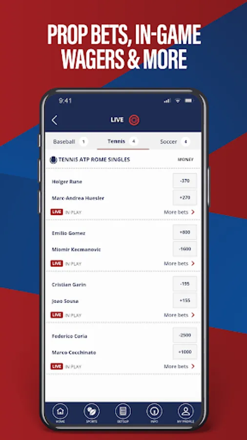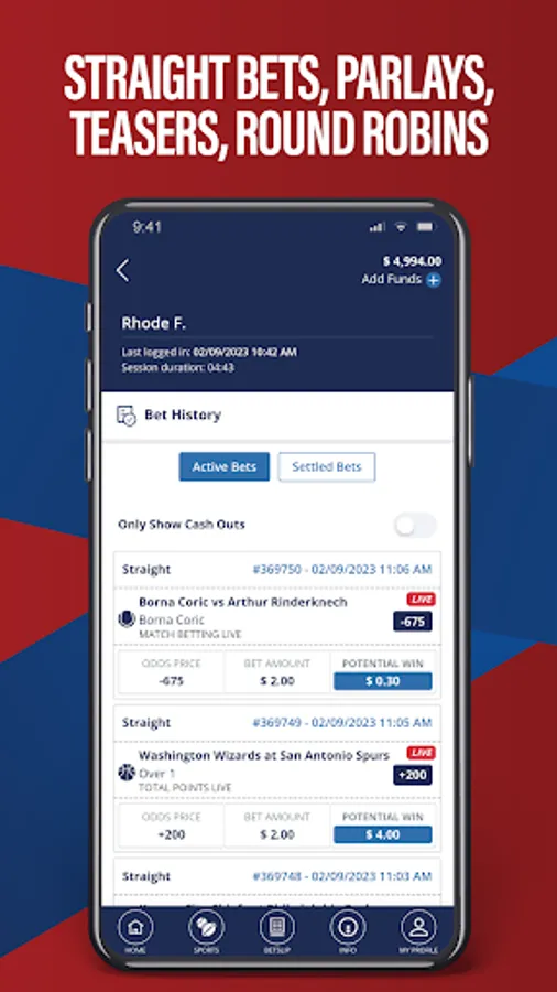Get your bets in on anything from professional and college basketball and football, to hockey, baseball, soccer, tennis, golf and more! Build parlays and round robins, bet the money line, tease the spread, and even bet live throughout most games.