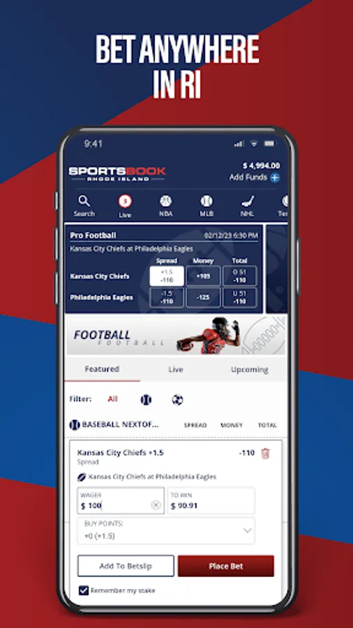 Bet sports anywhere in Rhode Island from the palm of your hand! Download the Sportsbook Rhode Island App for FREE and start betting on all the sports, teams, and players that you love.