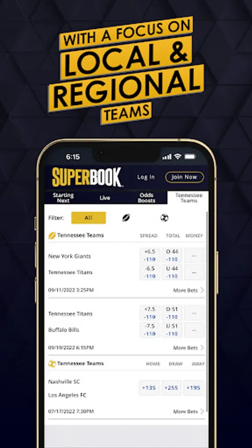 Don’t miss out on our full list of wagers for the NFL, NBA, WNBA, MLB, NHL, MLS, UFC, college sports, motor sports, MMA, boxing, golf, soccer, tennis and many more sports. Tennessee is home to some of the most popular sports franchise teams – Memphis Grizzlies basketball, Nashville Predators hockey, Tennessee Titans football and Nashville Soccer Club. SuperBook Sports allows you to place a bet on your favorite team.