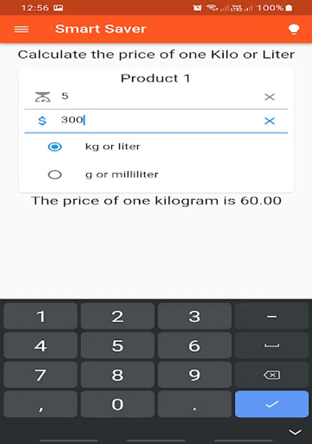 Price per Kilogram Calculation: Just enter the product's price and weight, and the value per kilogram will be displayed. This will help you identify sustainable and more economical deals for your daily purchases.