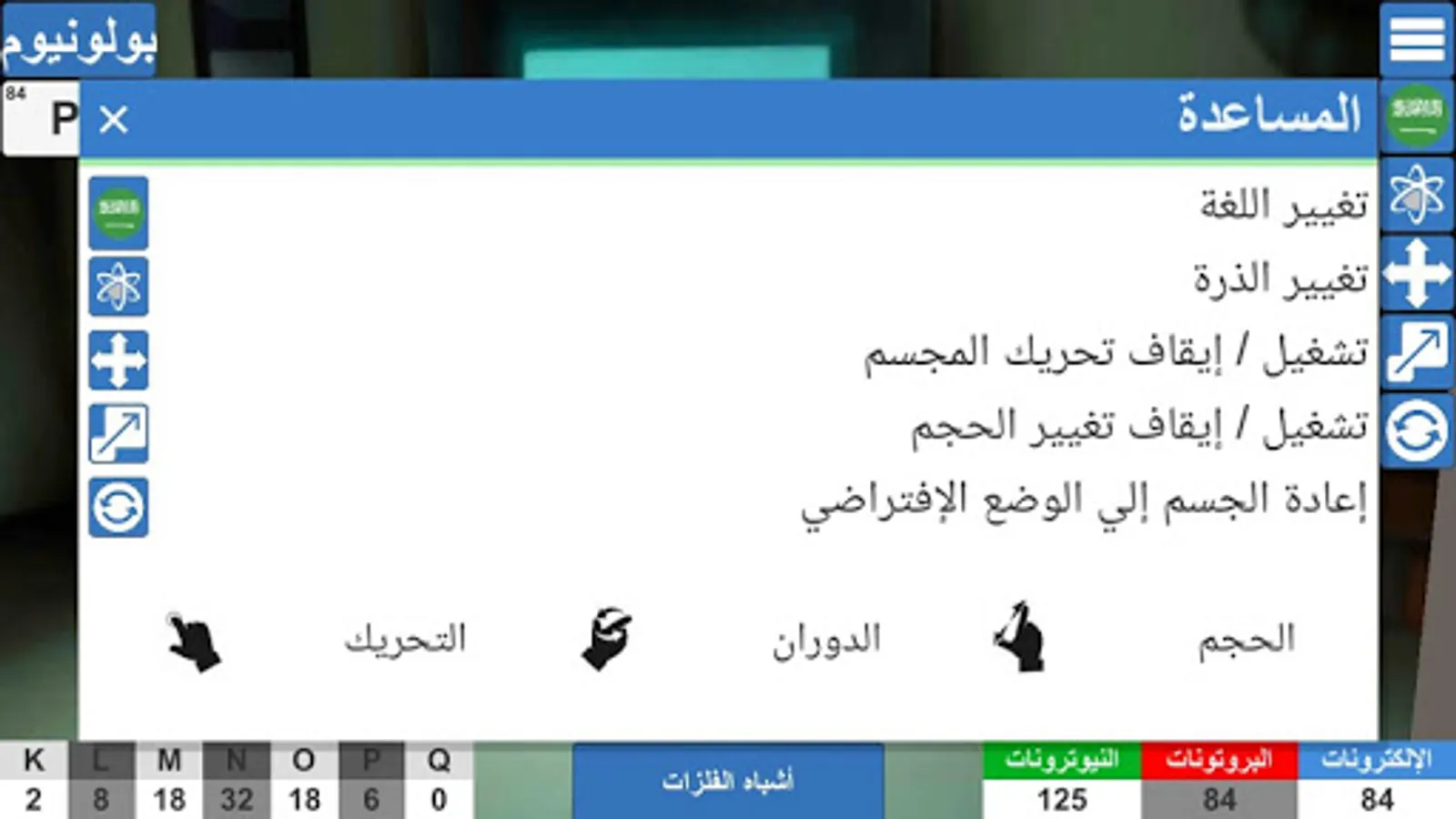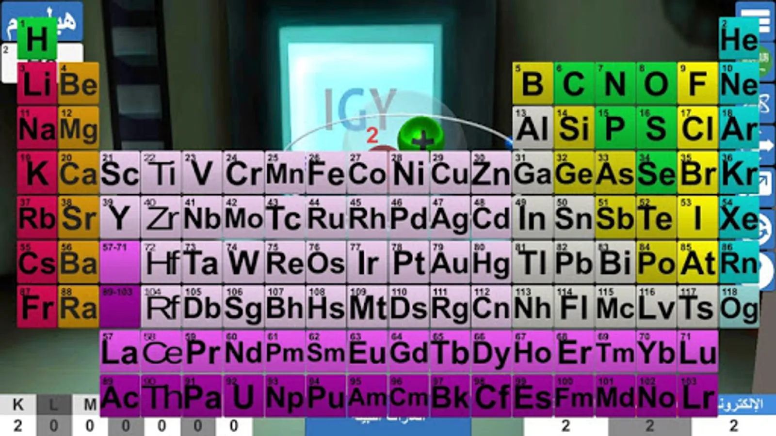 This application, "Periodic Table 3D (Arabic - English)," provides a comprehensive and interactive representation of the periodic table, offering information about each element in both Arabic and English languages. The elements are categorized into distinct groups, enhancing the user's understanding of the chemical landscape: