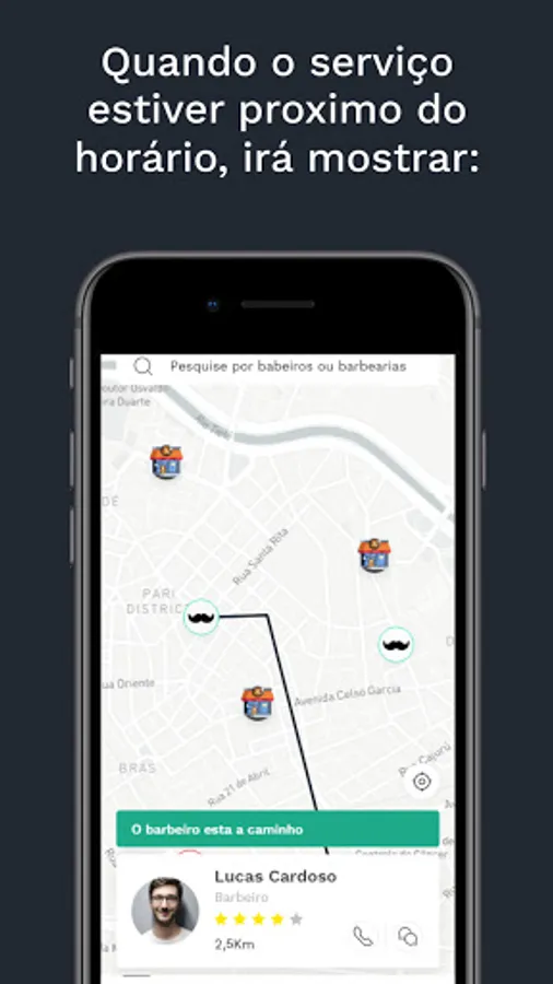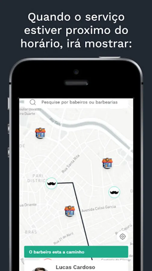 When opting for the home care service, the customer will select the type of service, will be able to check the price of the service and, based on its location, the total cost (including travel fee, if applicable). After confirmation from the client and the professional, the service provider's travel can be followed up to the service address and payment can be made online or directly to the barber.