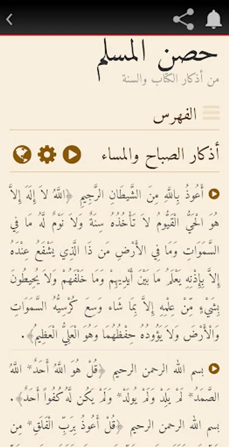 - يحتوي التطبيق على حصن مسلم ليساعدك في أذكار الصباح والمساء والنوم والوضوء والكثير