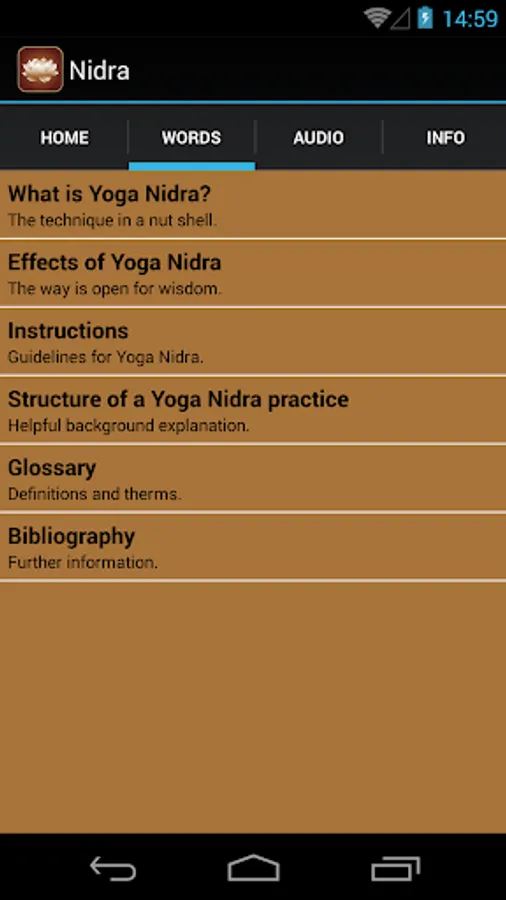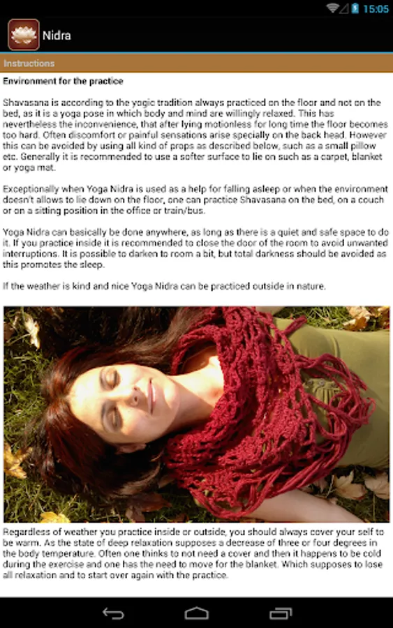 All the exercises are derived from the yoga nidra method and have been conceived and recorded by a professional yoga teacher.