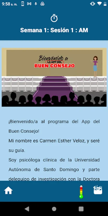 El Buen Consejo Móvil (EBCM) es un programa de psicoeducación para personas que están experimentando depresión o ansiedad leve o moderado. Los usuarios aprenderán habilidades para manejar sus síntomas de depresión y ansiedad en ejercicios autoguiados por media de la app, como técnicas de aprendizaje para superar estados de ánimo negativo. Las estrategias aconsejadas tienen un enfoque de terapia cognitivo-conductual.