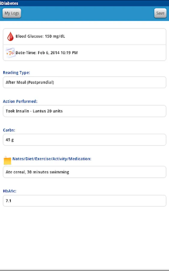 The ultimate app for Mobile Diabetes Management, carry around iDiabetes™ in your phone or tablet all the time to keep on top of your blood glucose levels. As per studies, self-monitoring of blood glucose (SMBG) can aid in diabetes control - http://clinical.diabetesjournals.org/content/20/1/45.full