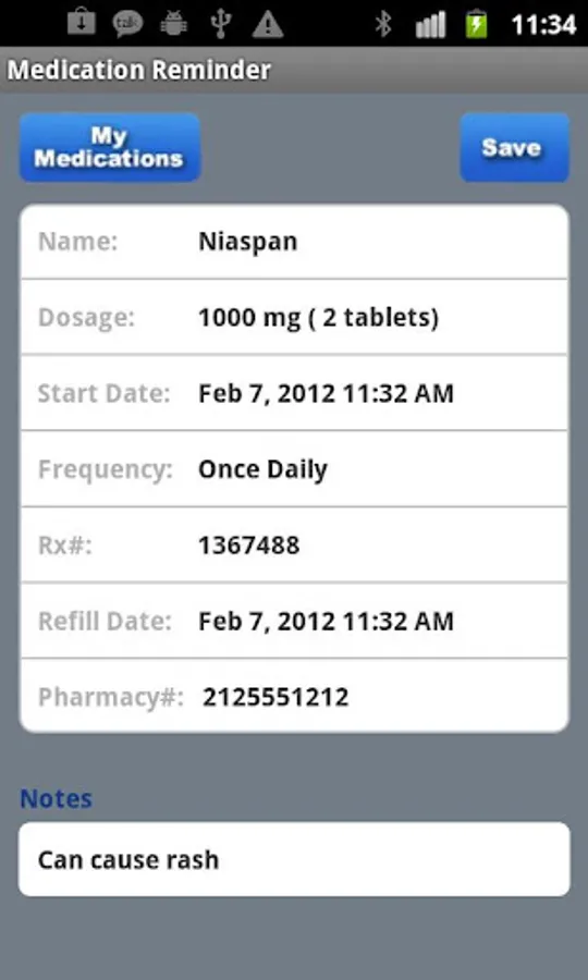 * EASY and INTUITIVE interface for tracking Dosage, Frequency, Rx and Refill info.