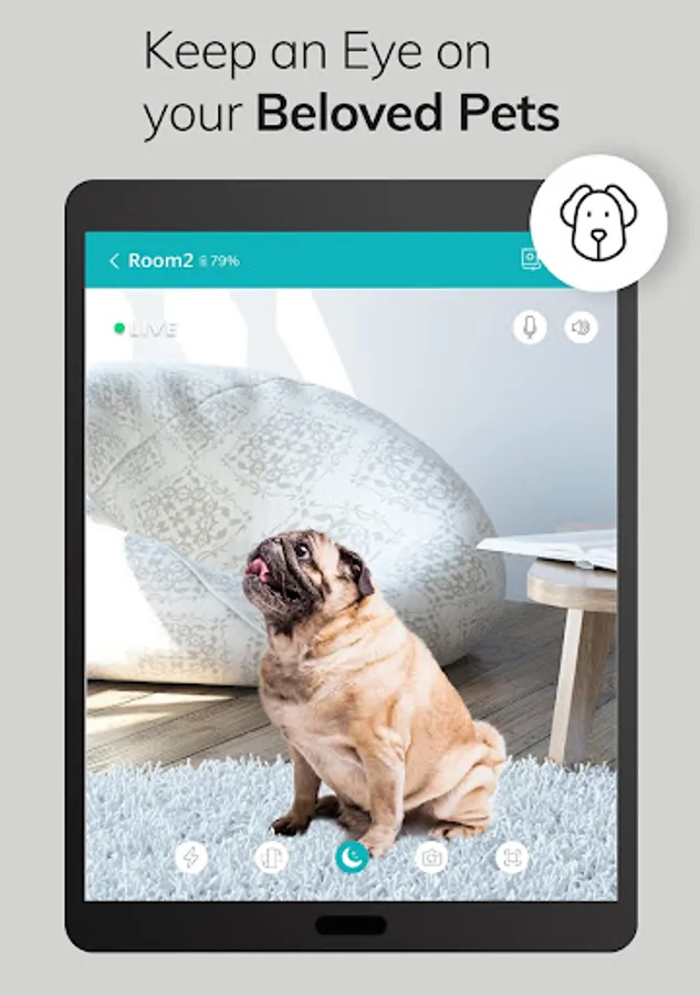 Using Android's built-in mic and speaker now you can turn that into a walky-talky, you can now have Two-way Talk: communicate with people and pets.
