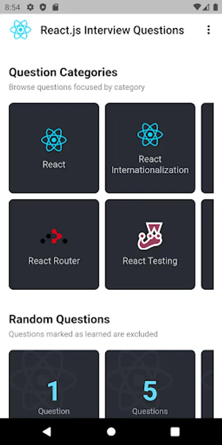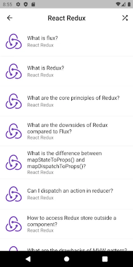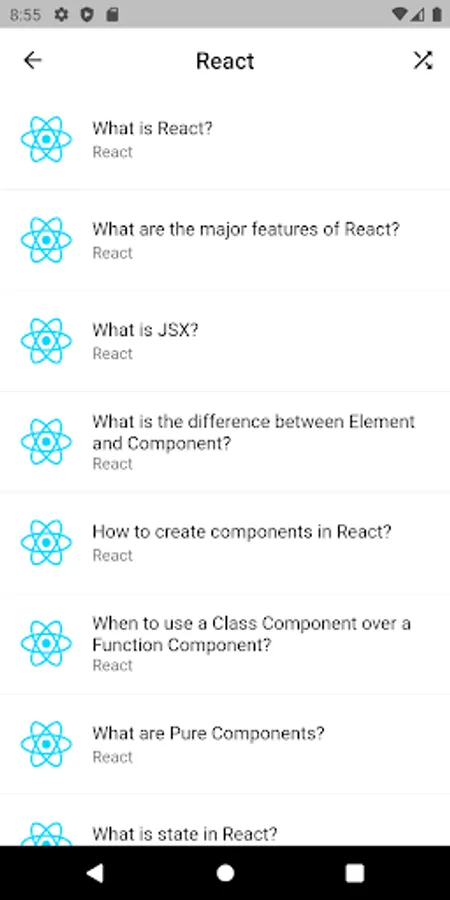 Familiarize the top React.js interview FAQ and answers within your fingertips. Choose questions by category or by quick random questions. Exclude questions by marking it as "learned" or create a set of questions by adding it to your "bookmarks".