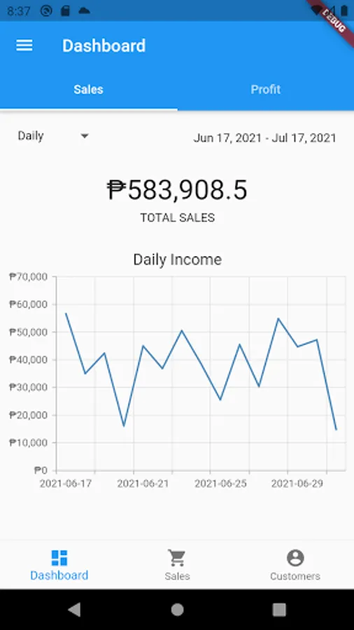 A simple app that enables you to monitor your customers, product and sales on a daily, weekly and monthly basis. The app is offline but you can backup your data using Google Drive.