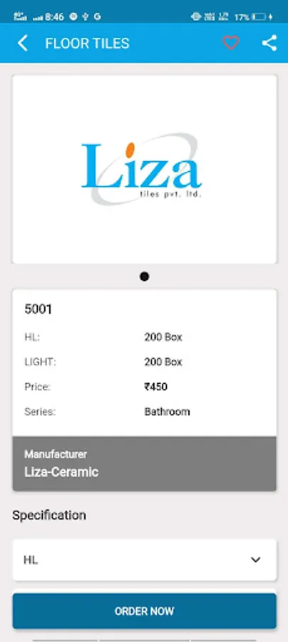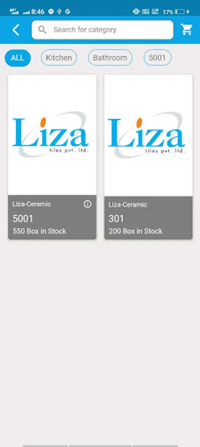 Liza Ceramic Tiles app providing cart functionality, so customers can order online, customer can add product as a favourite as well.