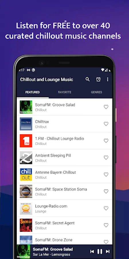 - Listen to 40+ hand-picked chillout & lounge music channels