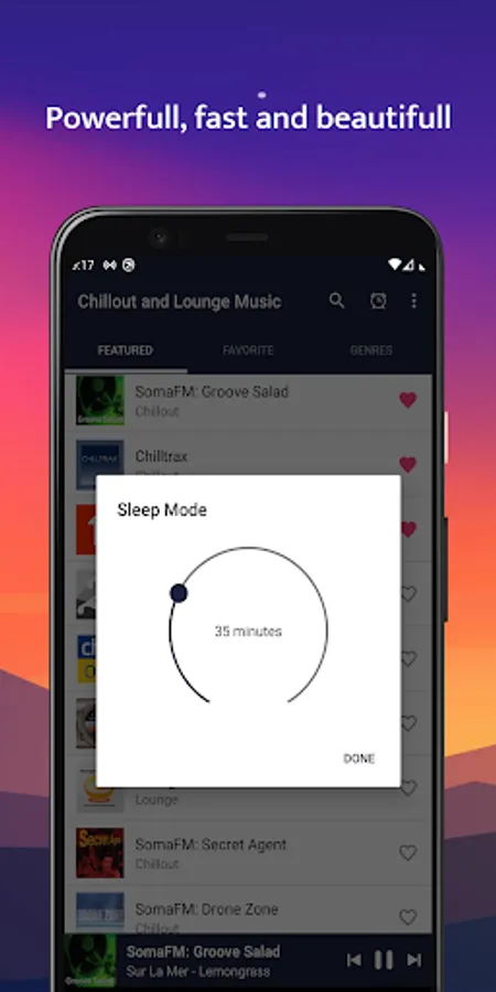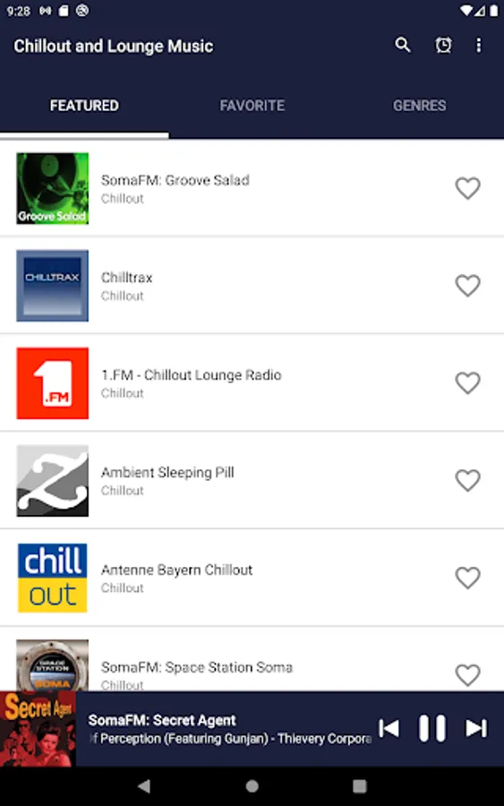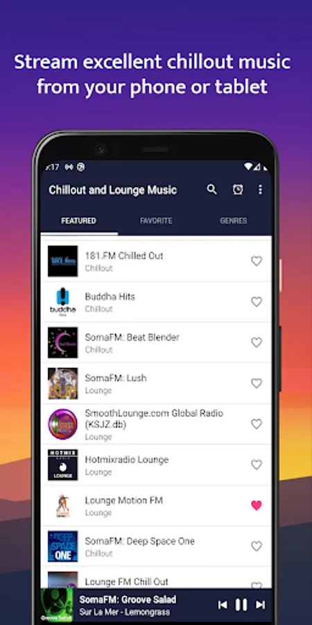 Listen to FREE chillout & lounge music radio online. Choose from over 40 unique channels (Chill-out, Lounge, Ambient and others) from all the world with a very easy interface. Variety of radio stations. Stations are dynamically loaded, we will be adding more and more stations without you need to upgrade the app. The most personalized sleep and relaxation experience that you can possibly have.