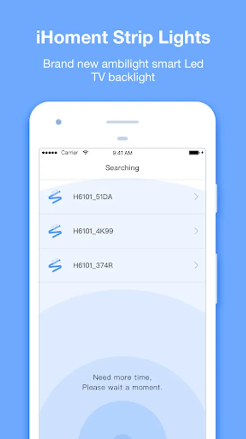 ihoment smart strip light is a smart colorful strip light, which can be controlled by ihoment app and change its color in multiple modes.