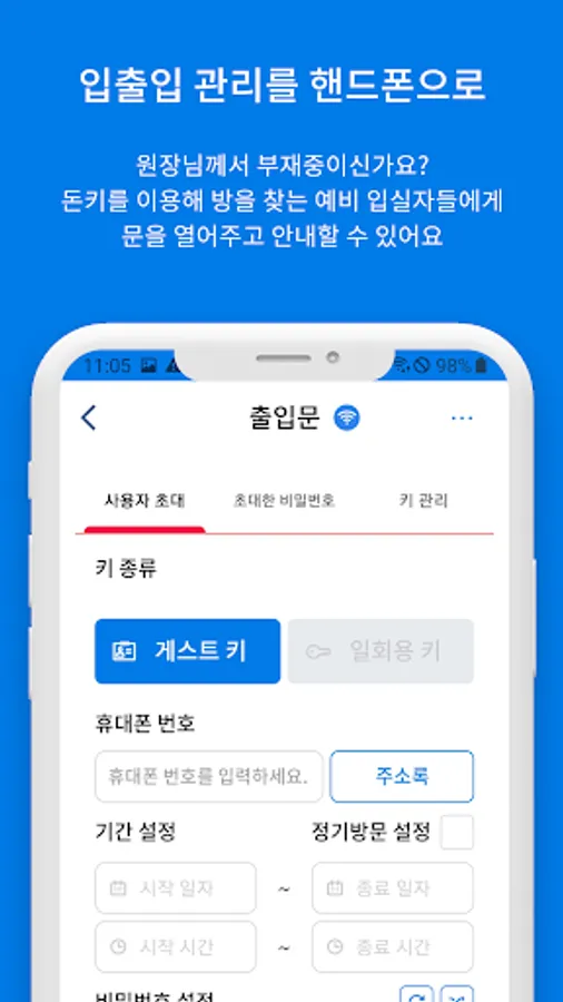 It is automatically deleted after the period, so no worries! Even if you leave early, you can erase the password right away with a single button on your cell phone.