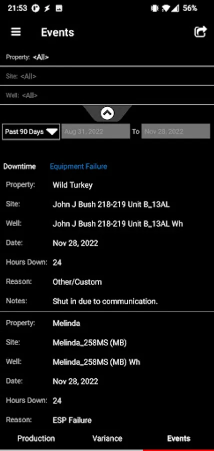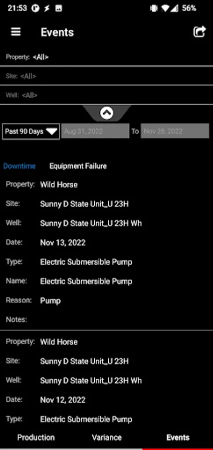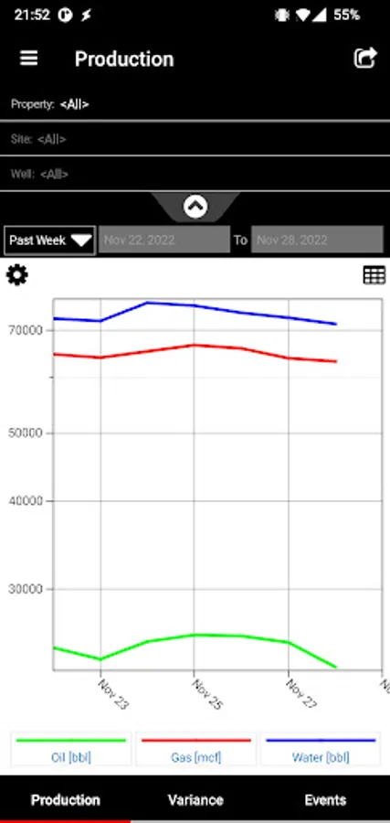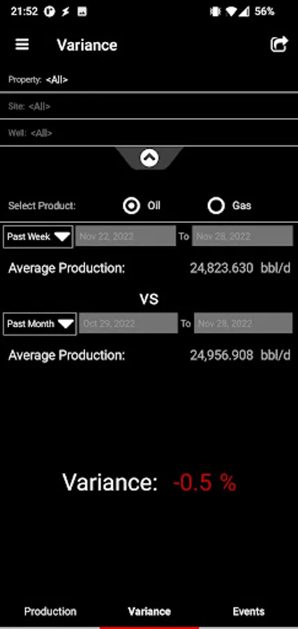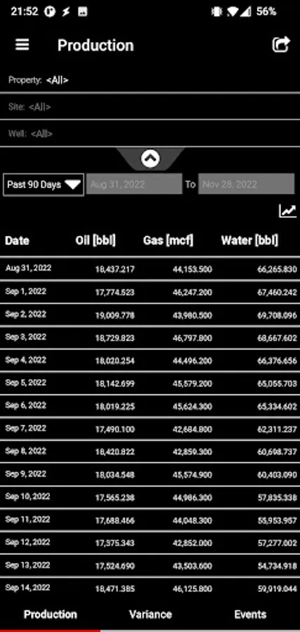 S&P Global FieldDIRECT® users can view their production from the project, site, and well levels in a table or chart view. The production and various data sets related to production can be graphed on a linear or log scale. Variance can be calculated at all levels based on user set timeframes. Downtime records and Equipment Failure records can also be viewed at all levels. The app allows S&P Global FieldDIRECT® users to view the pertinent production information regarding certain wells or areas at their fingertips from anywhere they have cellular data coverage or access to WiFi.