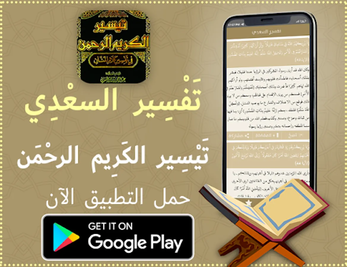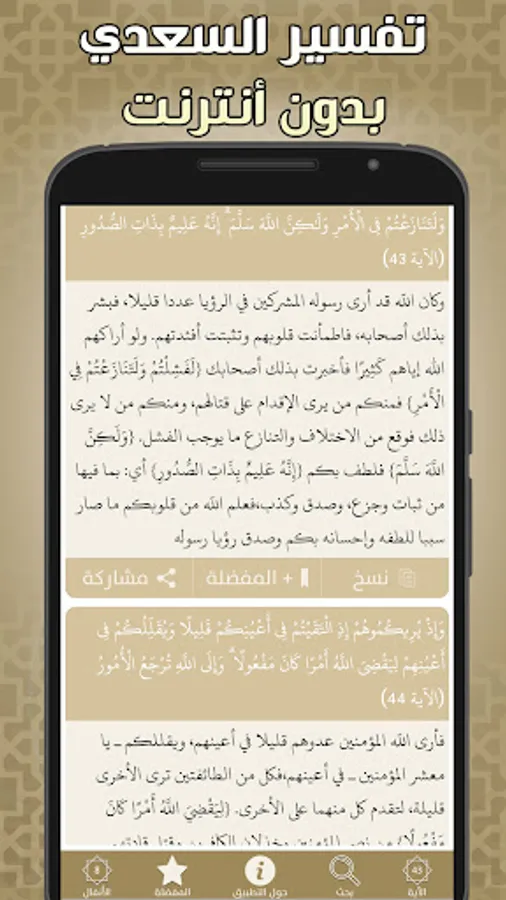 ✔️ The ability to share the application of the interpretation of the Noble Qur’an without the net, Tafsir Al-Saadi