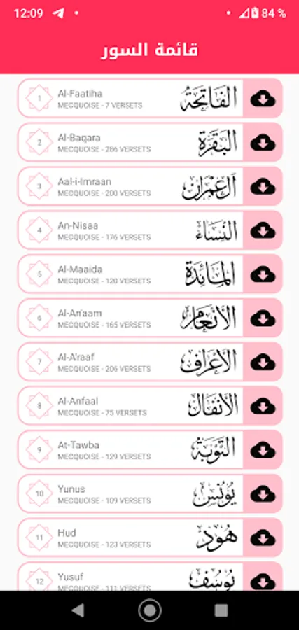 • Download surah and playing it without internet.
