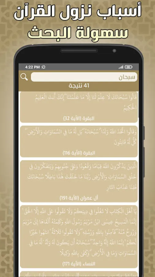 ✔️ Quick search for any verse in the Noble Qur’an and display the reason for its revelation