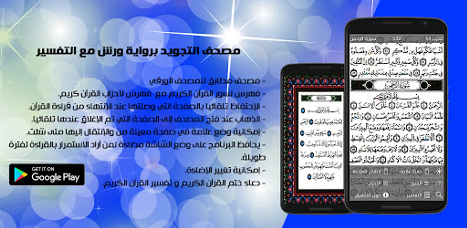 🕋 Features of the application of the Tajweed Quran, Warsh on Nafeh Quran Karim, complete with interpretation فسير