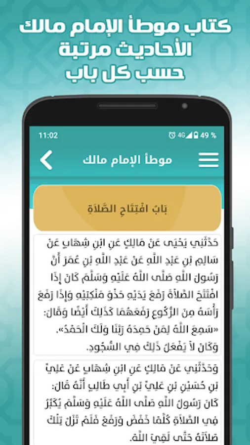 A book appeared on the ground after the Book of God, it is more correct than Malik’s book. ”Al-Bukhari said on the authority of Al-Muwatta:“ One of the most authentic isnads is Malik on the authority of Nafi 'on the authority of Ibn Umar. ”Imam Malik himself said about this book:“ I presented this book to seventy jurists of Madinah, So all of them have trampled upon him, so I called it al-Muwatta. ”The application also contains the explanation of Sheikh Saeed Al-Kamali
