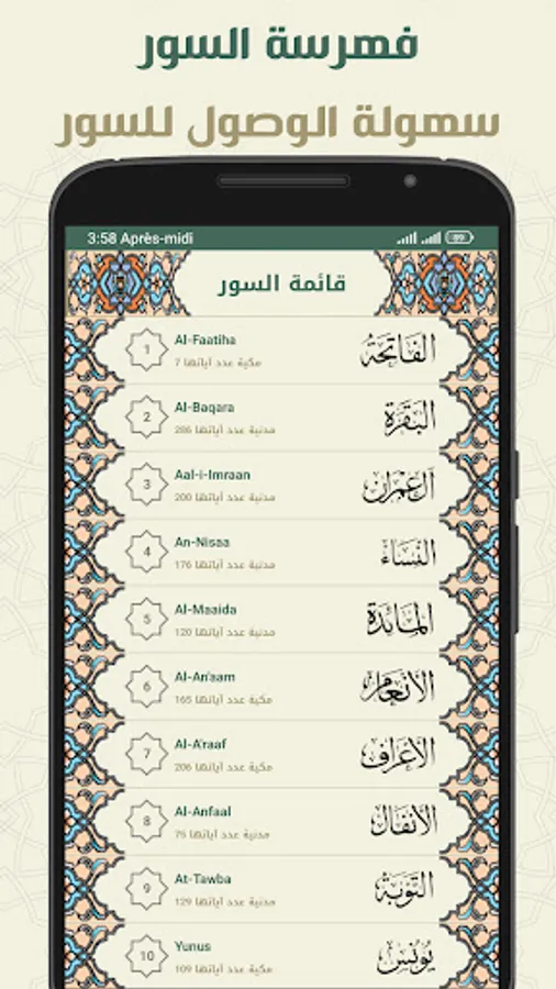 Control the brightness of the screen while reading Al-Minshawi’s Qur’an, four quarters, and automatically keep the lighting of the Holy Qur’an, four quarters without the net.