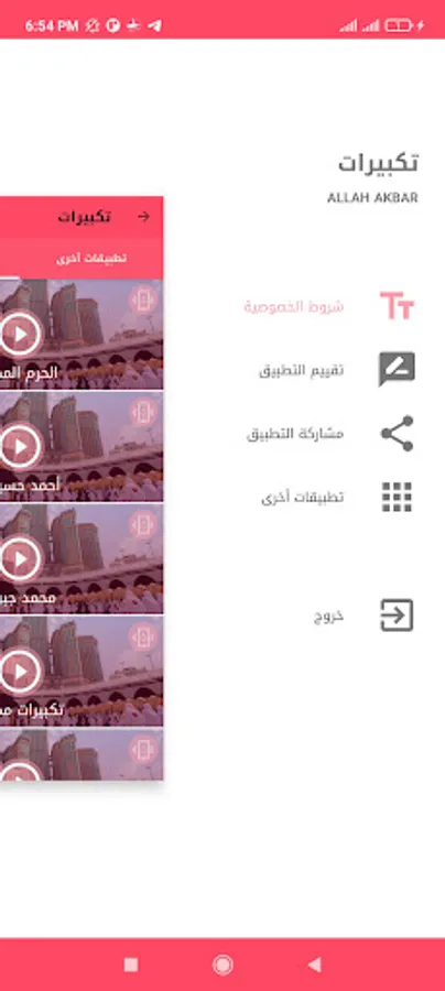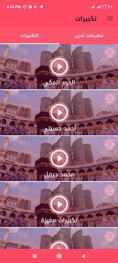 - Religious tones with the sound of the Eid takbeer for a number of voices, meeting the pilgrims, and the voice of Mishary Al-Afasy