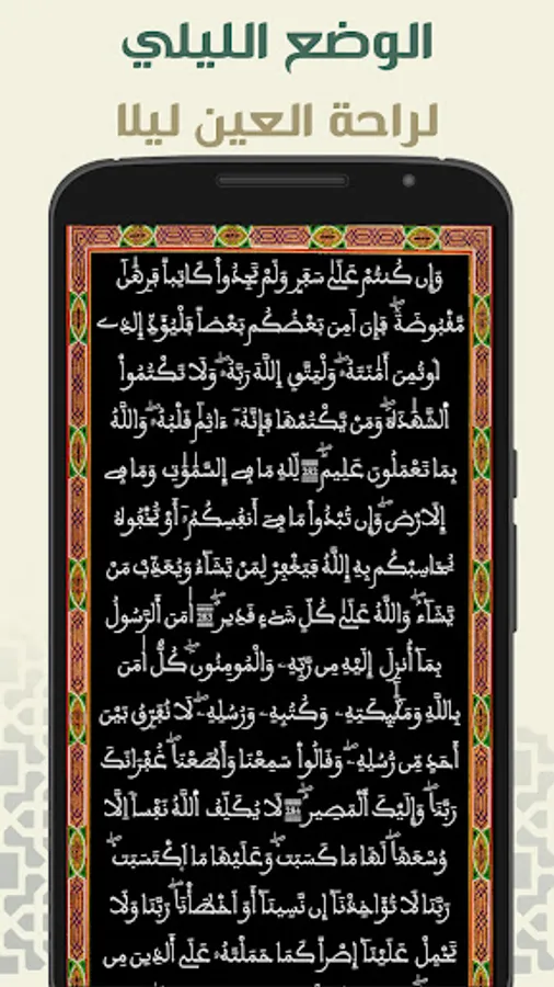 Moving to the night mode to facilitate reading the Qur’an at night.