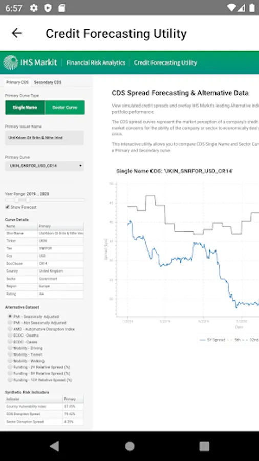 With our Credit Forecasting Utility (CFU), you can view simulated credit spreads and overlay relevant Alternative data and synthetic credit spreads to gain insight into future portfolio performance.