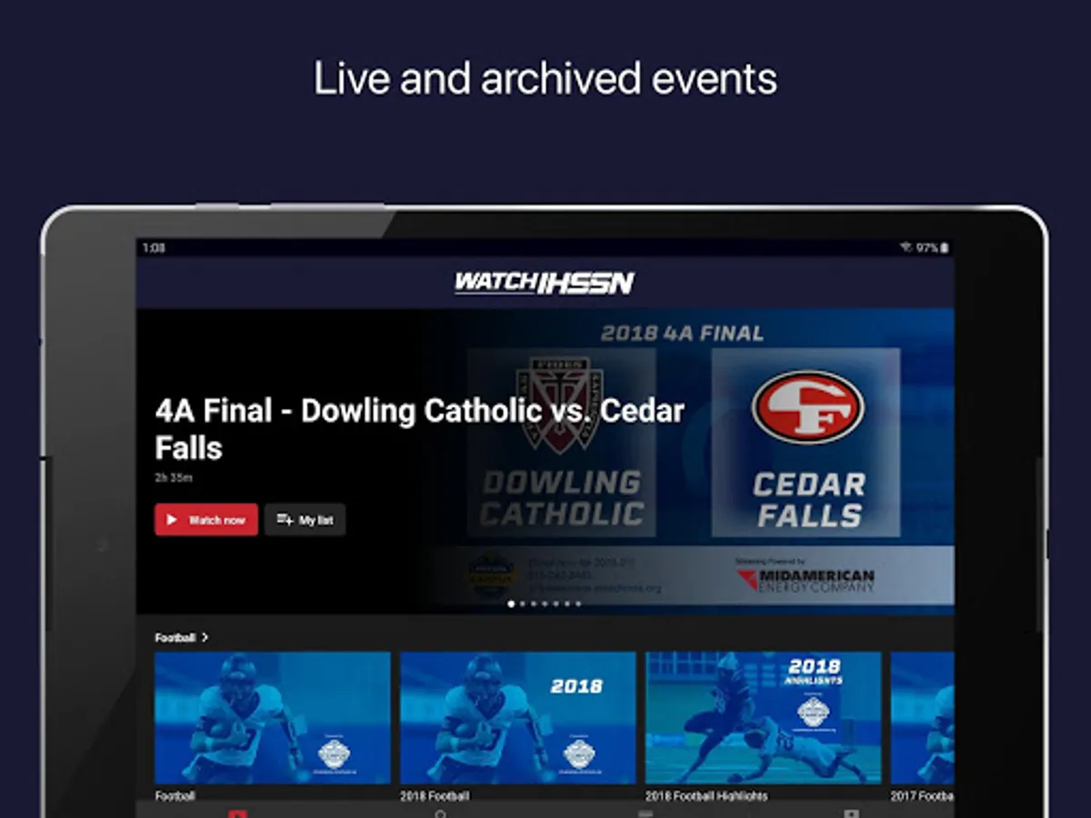 Download “Watch IHSSN” for FREE and enjoy the Iowa High School Athletic Association State Championships.