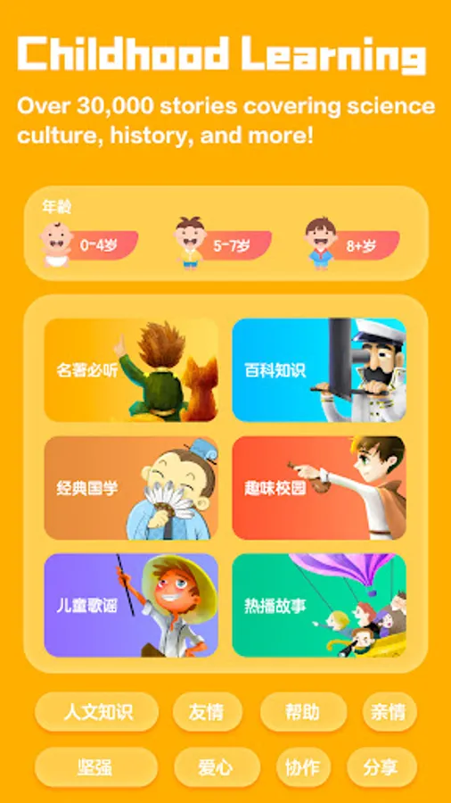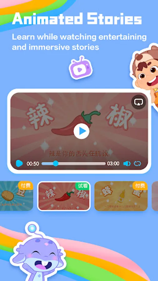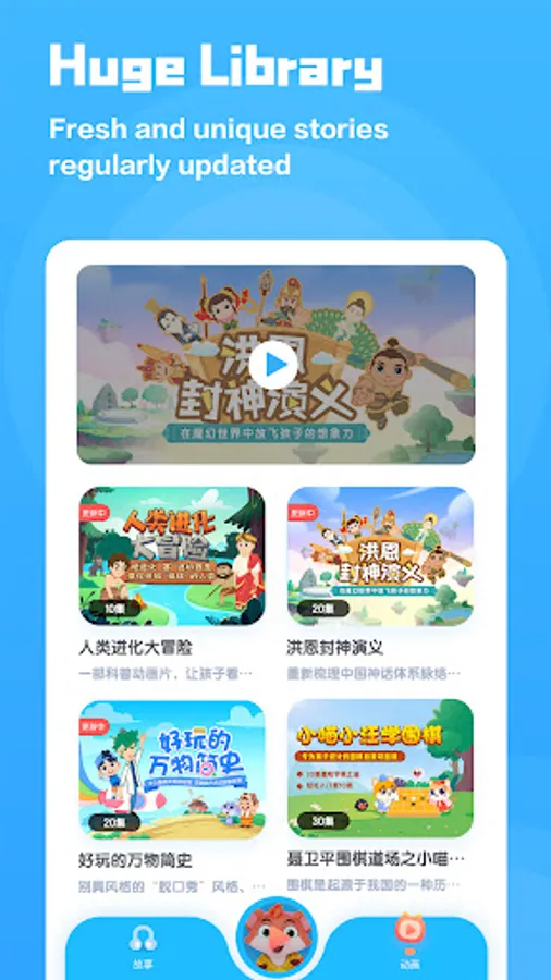 Listen to stories, watch stories, learn from stories!iHuman Stories is jam-packed full of audio and animated stories that help children learn and grow. We have a huge range of story topics including natural science, history, humanities, fairy tales, classic nursery rhymes, traditional Chinese tales, classic masterpieces, wonders of the world, and much more! Children can choose to listen to stories or watch animations, according to their own needs and preferences. All stories are carefully selected and developed by the expert team at iHuman to support the growth of curious young minds!