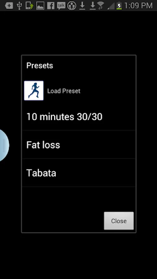 ** Load preset : you can load one of our existing preset (Fat Loss, Tabata) or one you saved previously