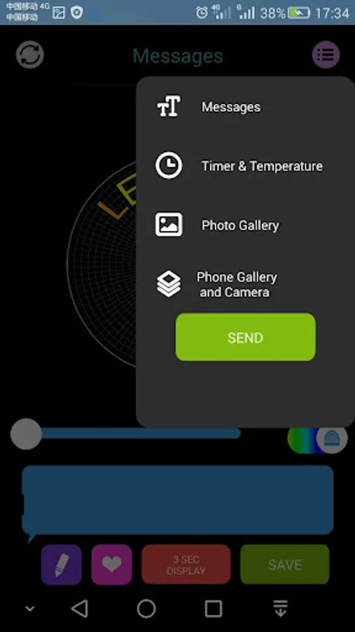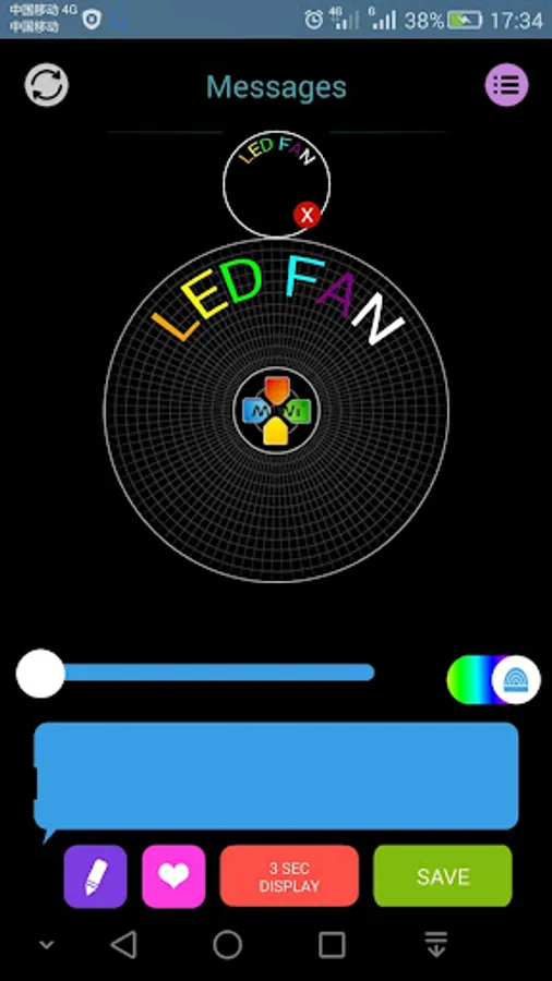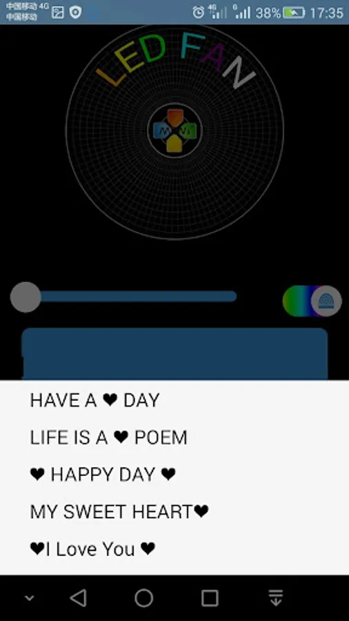 Mobicom APP control the LEDFan and let it play a full-colour Cool LED display show, it may control the LEDFan display:
