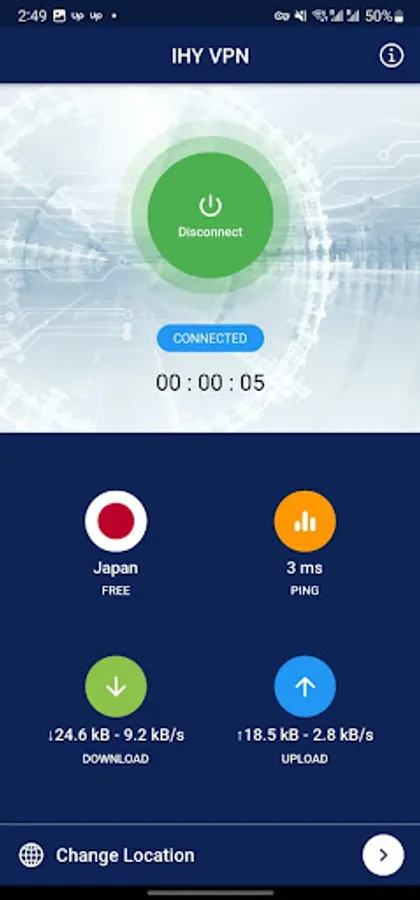 IHY VPN prides itself on its user-friendly interface, making it accessible to both tech-savvy users and those new to VPNs. Connecting to a server is as simple as a single tap, and the app's intuitive design ensures that you're always in control of your online security settings.