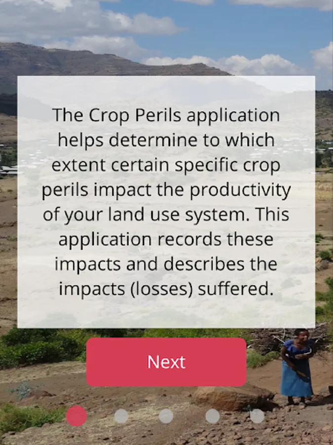 The Crop Perils application helps determine to which extent certain specific crop perils impact the productivity of your land use system. This application records these impacts and describes the impacts (losses) suffered. Please fill this questionnaire directly on the field that is described, after the surveyed crop is harvested.
