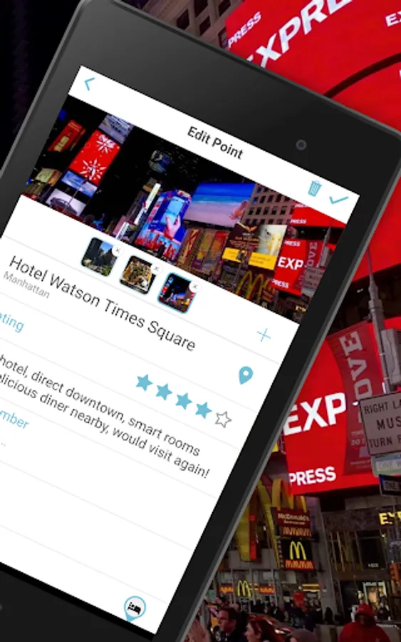 We travel a lot and meet many people. We always wanted to store the places of interest in a fast and efficient way, to remember the places we've been, where we had a good dinner, met a colleague, saw a nice building,...