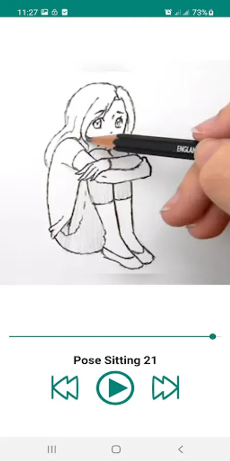 Drawing and sketching Manga, Anime Girl in sitting position using pencil, paper and don't forget eraser for cartoon. In this app "Draw Anime Girl Pose Sitting", you will learn how to draw Anime girl sitting on her knees position with a little bit of perspective and slightly foreshortening.