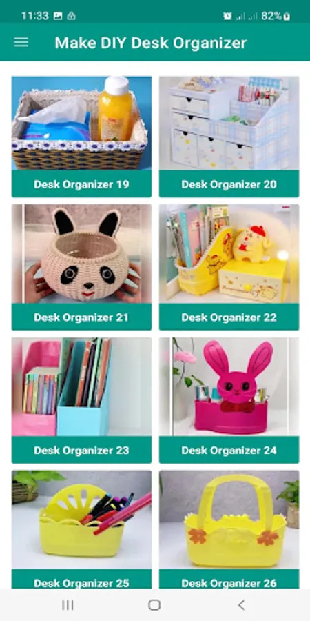 This app "Make DIY Desk Organizer" contain 20+ DIY desk organizer ideas and how to make it by yourselves. They will help you keep your workspace clean and organized so you can be more productive and creative.