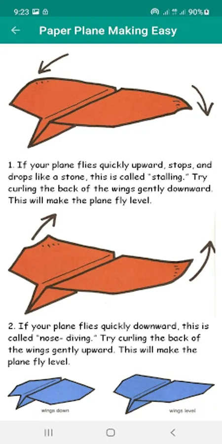This app "Paper Plane Making Easy" contain 26 step by step tutorials of how to make paper aeroplane that can fly in the air. You just need to chose the paper airplane model and follow simple instuction on this app. All the paper plane models on this app are: