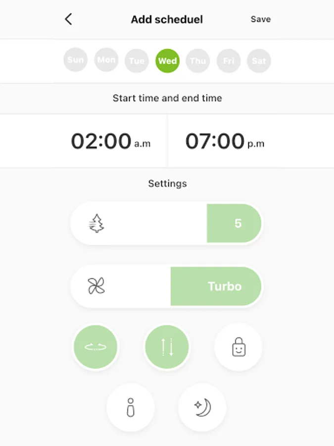 - Remotely control fan speed, air flow, operation mode, sleep timer and other functions.