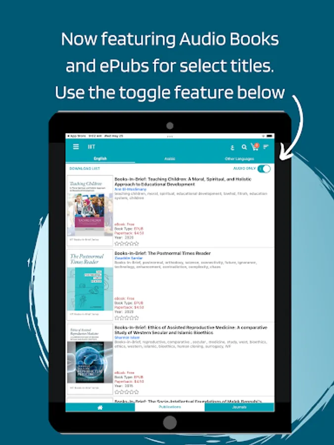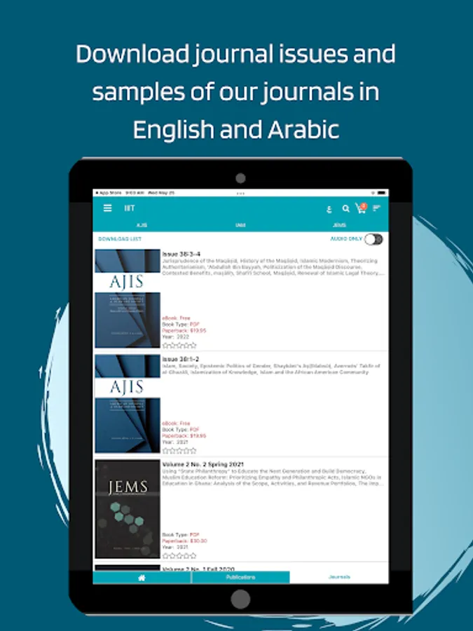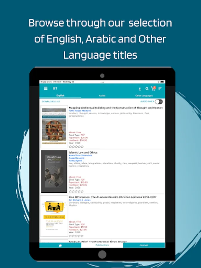 Quick access to IIIT’s latest titles in English, Arabic and other languages as well as our latest journal issues right from the home screen