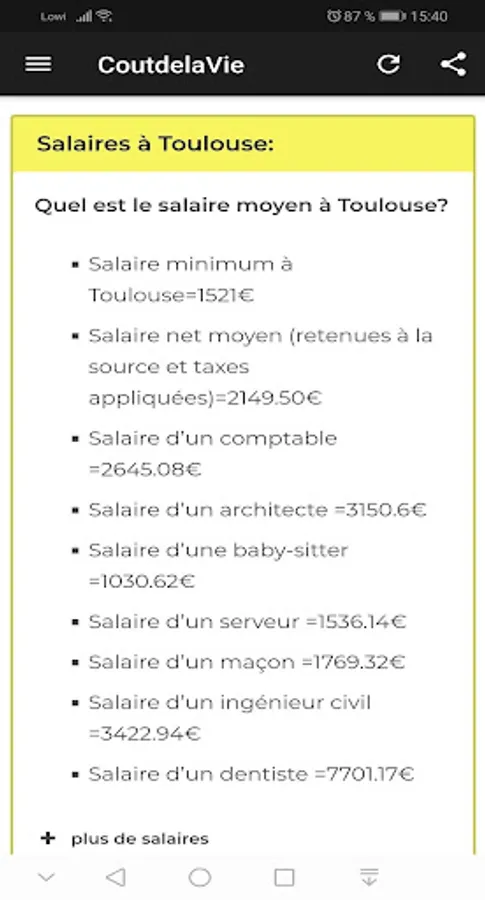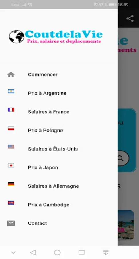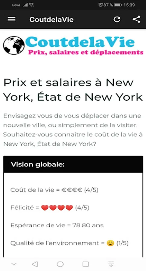 The cost of living does not yet have an offline version because we depend on our website https://coutdelavie.com/