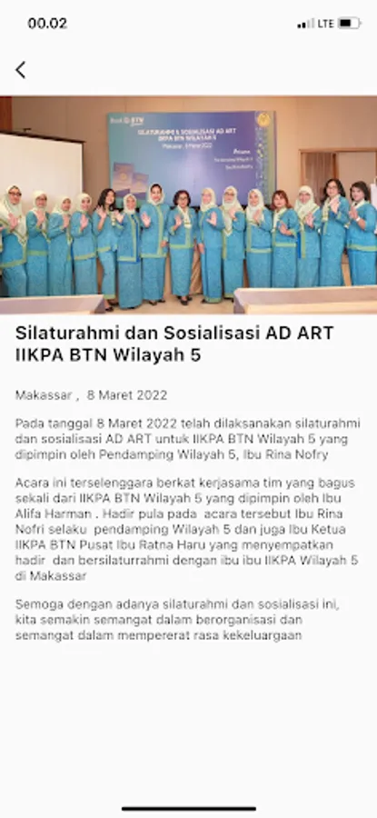 Selain itu kegiatan IIKPA BTN juga bertujuan untuk meningkatkan persatuan dan kesatuan, serta meningkatkan kepedulian sosial baik antar anggota organisasi maupun sesama.