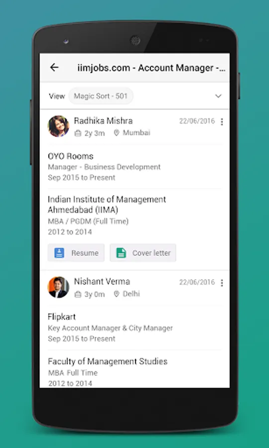 - The ability to download resumes on your mobile device for detailed viewing and sharing