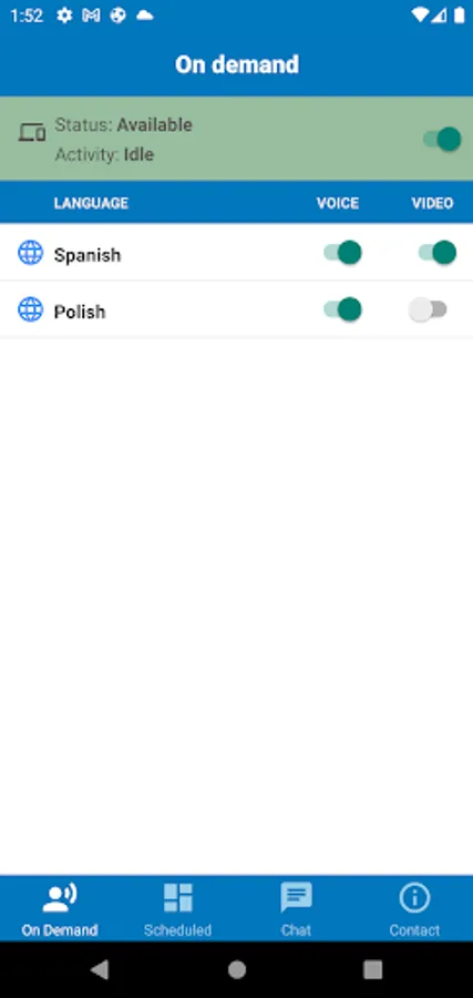 - Make yourself available for On-Demand Video and Phone Interpretation and receive calls on your mobile device