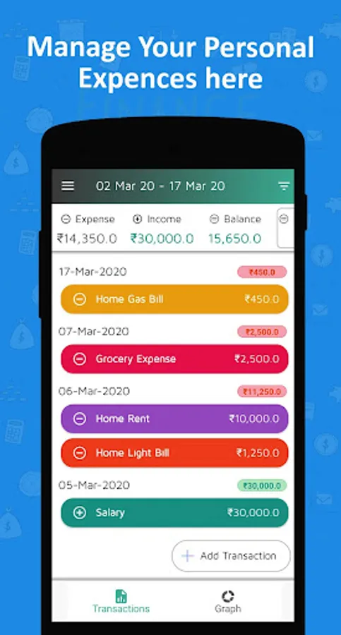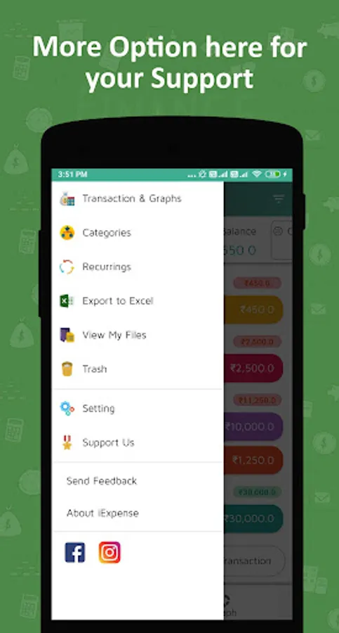 iExpense takes care of your transactions by providing a separate view. They are shown with different colors. You can even add a photo of your transaction.
