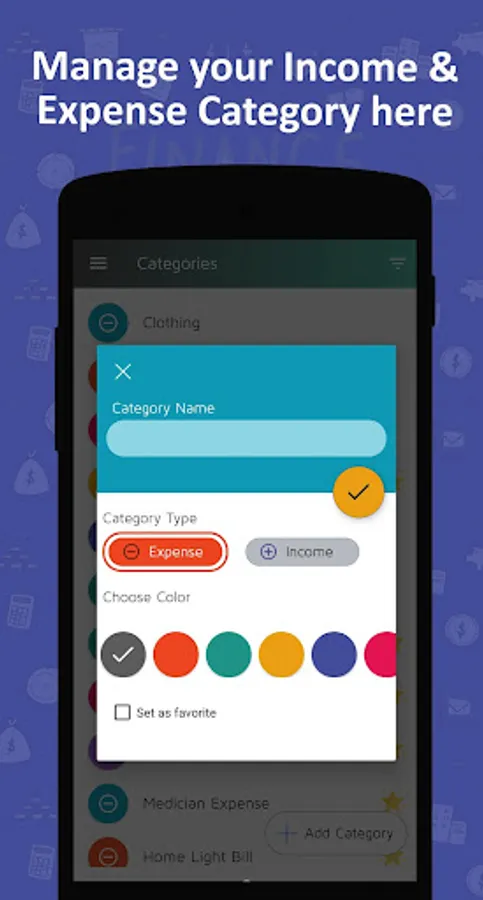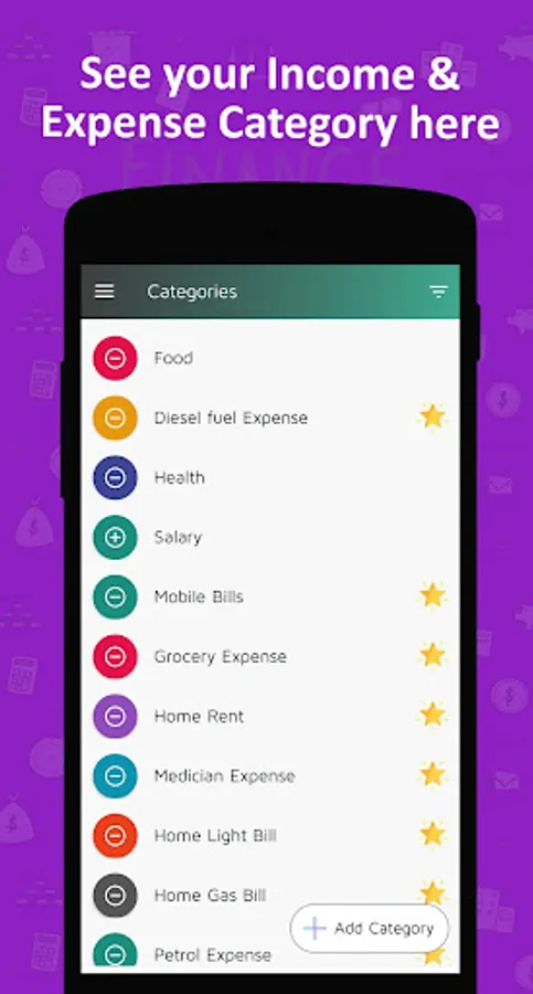 iExpense allows you to add categories to group together your incomes or expenses. You can set colors to categories to easily distinguish your transactions.