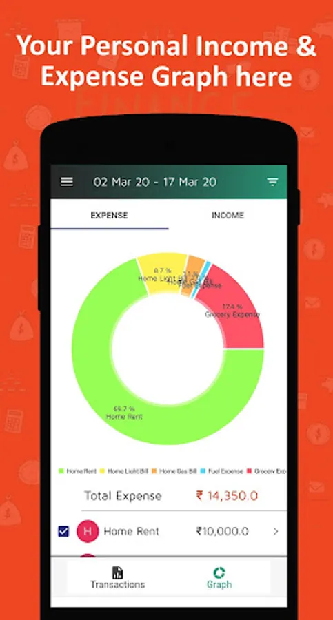 iExpense shows powerful graphs to analyse your incomes and expenses and separate categories.
