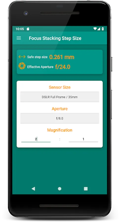This application has the following macro tools / calculators that will help you take your macro photography to the next level: