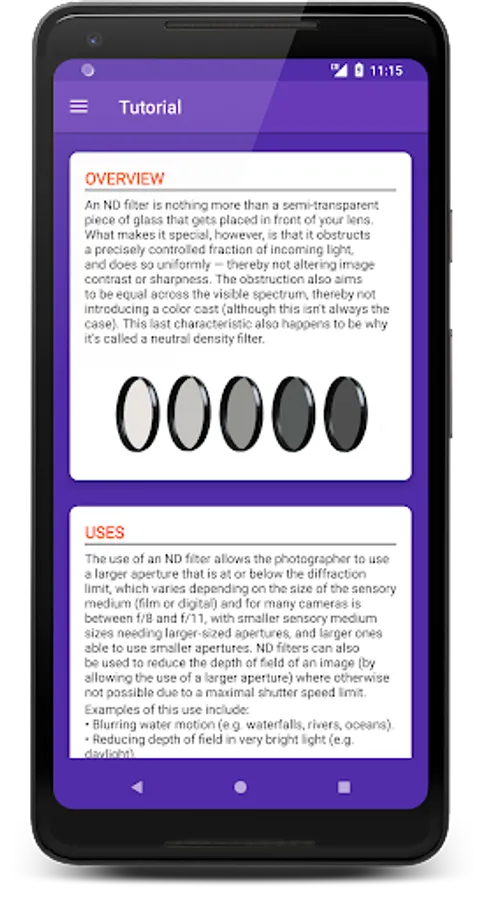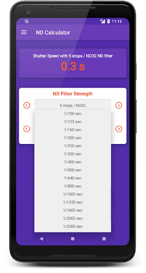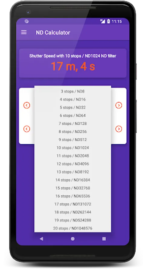 Simple calculator app for DSLR photographers taking long exposure shots using Neutral Density ND filters.